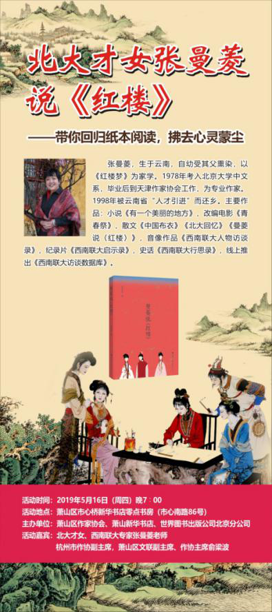 《曼菱说<红楼>》一书作者张曼菱2019年5月中旬在苏杭、上海一带沿途讲学。以此为契机,九州网页中国有限公司北京分公司与当地相关机构联合邀请张曼菱老师举办了四场《红楼》讲座,场场都是丰富多彩的文化盛宴。